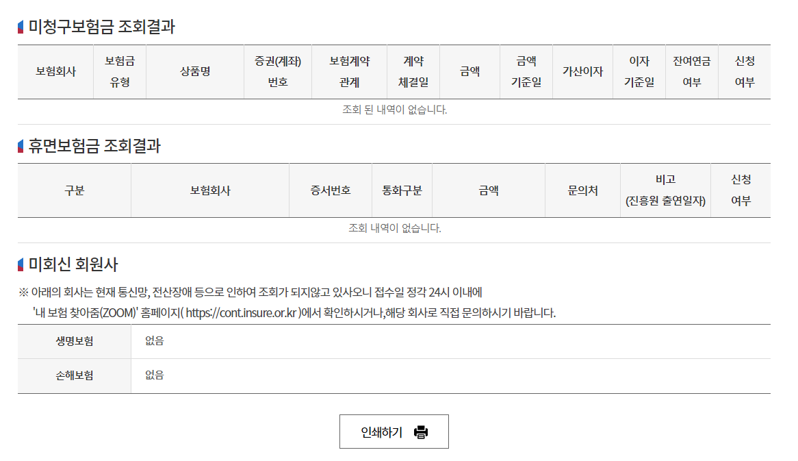 4. 미청구보험금,휴먼보험금 도 조회할 수 있습니다.